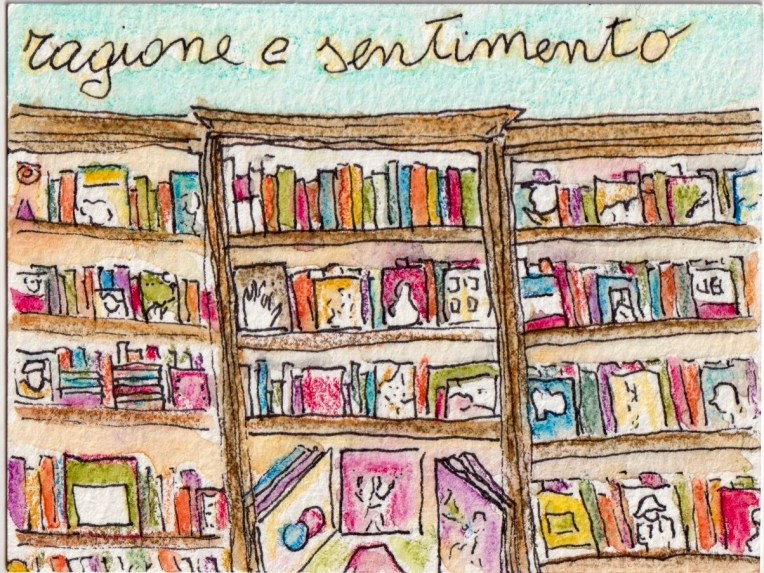 E’ iniziata la collaborazione fra ElenaCandoliStudio e Libreria ALBIZZI. Quatto piccoli dipinti originali per altrettante GIFT CARD, uno per ogni valore proposto. Un regalo quindi nel regalo. Una personalizzazione che espliciti la cura e il calore che Libreria ALBIZZI esprime in ogni scelta. Ho perciò scelto di rappresentare quattro particolari significativi di quel luogo: L’ingresso (e ciò che dell’interno si scorge dalla vetrina), Narnia (angolo dedicato agli illustrati e alla letteratura per l’infanzia ), un angolo relax di Ragione e Sentimento (sezione dedicata a saggistica, poesia, teatro, arte, cinema e romanzo), un particolare di alcune delle librerie di Ragione e Sentimento con la scritta luminosa che la sottolinea.